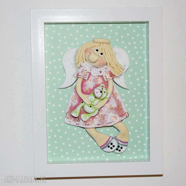 szybka wysyłkaObrazek dla kasi - aniołek z masy solnej w ramce. Pokoik dziecka handmade Aniołek z masy solnej w ramce, Gotowy do powieszenia na ścianę, Zapraszam45,00 zł