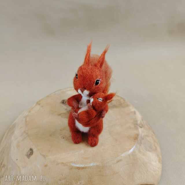 ręczne wykonanie wiewiórka z maleństwem - filcowana figurka pokoik