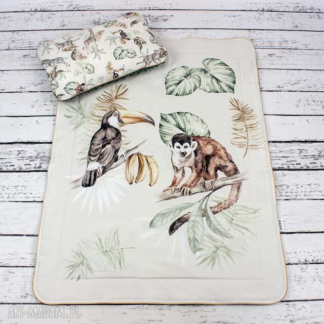 handmade zestaw 75x100 kocyk i płaska poduszka safari pokoik dziecka