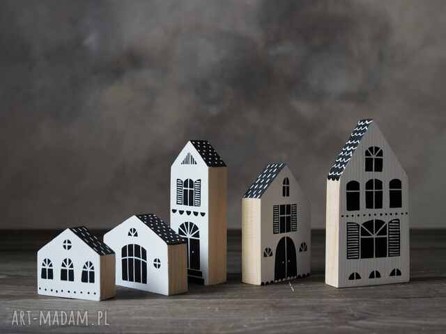 Komplet 6 szt - drewniane domki ręcznie malowane - naturalne.129,00 zł