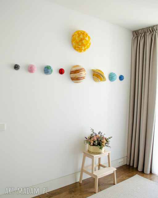 handmade zestaw dużych planet 3d z filcu - dekoracja ścienna i sufitowa do pokoju
