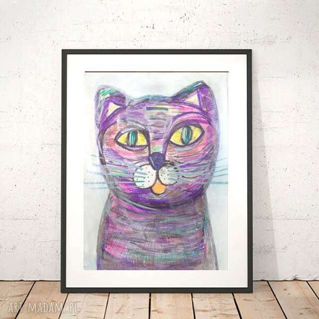 szybka wysyłkaMały obrazek z kotem, zabawny rysunek z kotkiem, kotek obraz a4, kot.35,00 zł