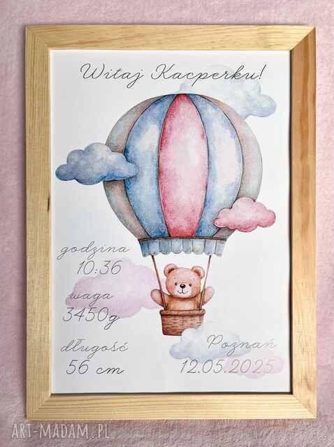 Metryczka z misiem w balonie.30,00 zł