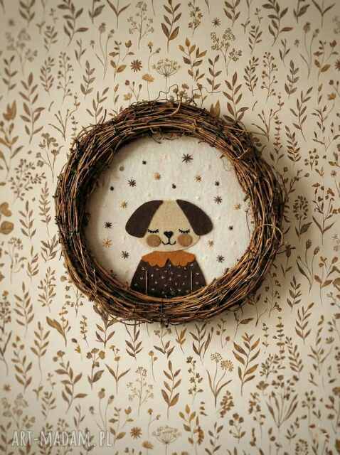 Produkt wykonany z materiałów dekoracyjnych (np. filc, tkanina, sznurek, drewno). Zawiera małe elementy.