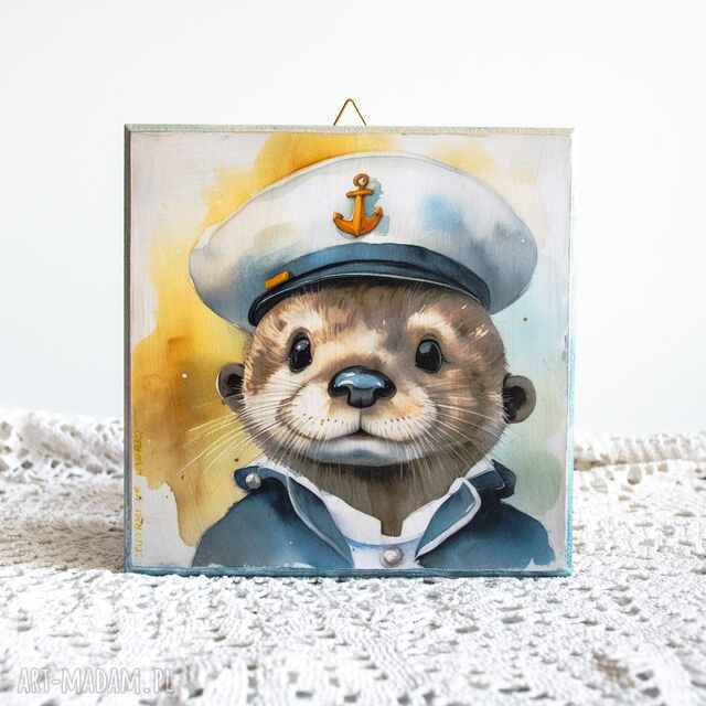 handmade obrazek kwadratowy - portret - kapitan wyderka pokoik dziecka
