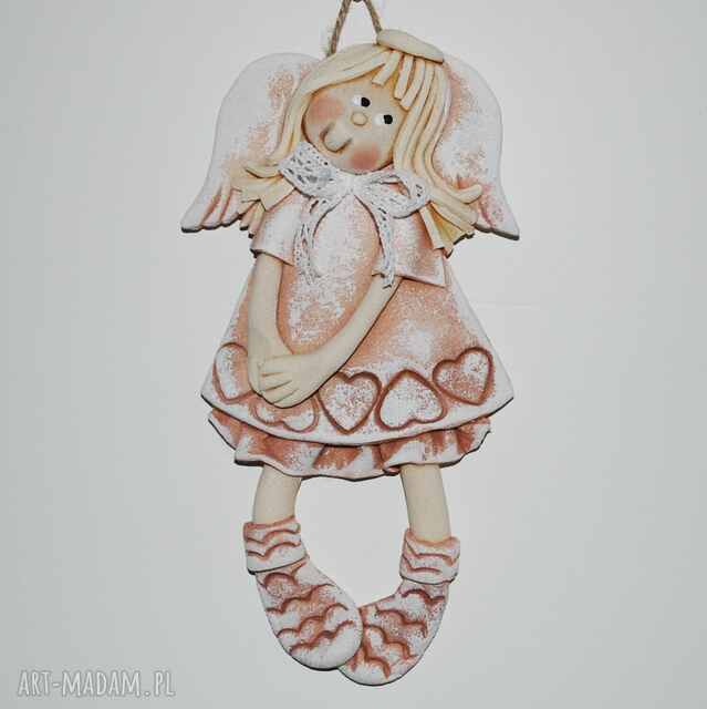 handmade nieśmiało się uśmiecham - aniołek z masy solnej, prezent, dekoracja pokoik