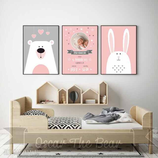 Różowa METRYCZKA ze zdjęciem. Zestaw z obrazkami format A3.