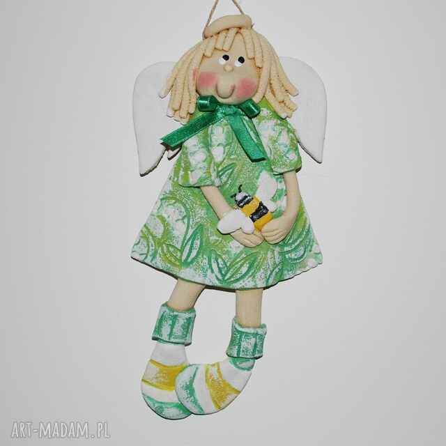 handmade konwaliowa kreacja - aniołek z masy solnej, prezent, dekoracja pokoik