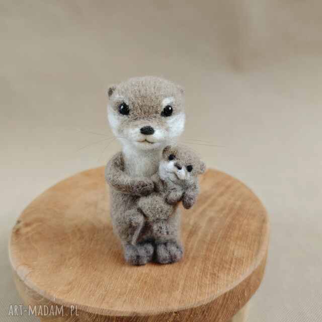 handmade wydra z maleństwem - figurka filcowana pokoik dziecka