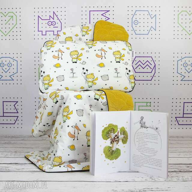 Zestaw płaska poduszka i kocyk idealny dla chłopca.