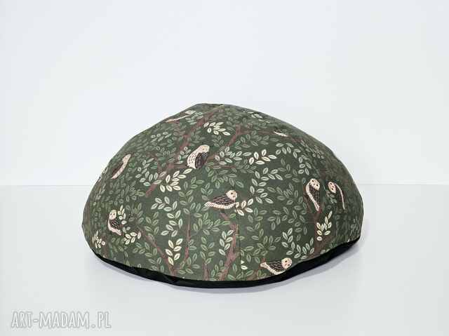 handmade zielona pufa dziecięca w leśne sowy, przytulna i naturalna pokoik